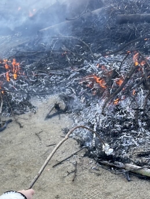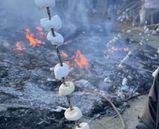 繭玉だけじゃなく、マシュマロも焼く子供もいます。