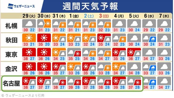 特に、ここ知立市は、(名古屋の天気予報ですが)湿度が高く、本当に蒸し暑いです・・・。校舎間を移動する教員が、サテライト塩尻や中津川から、ここ知立校に移動してくると、「本当に知立は暑い!!」と連呼しています。。。