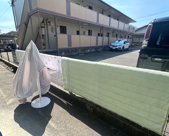 猛烈な暑さの中、この日差しを有効活用して、保健室の寝具を洗濯しています♪♪